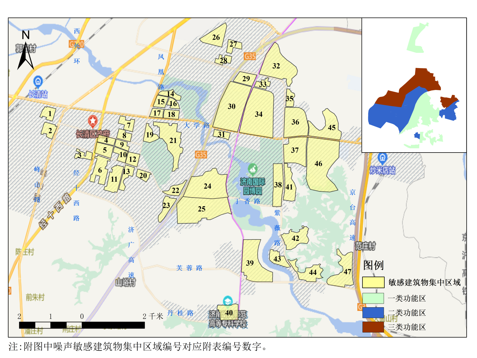 本次共划定敏感建筑物集中区域47块,面积17.38平方公里,占长清区1类和2类声功能区面积的27.50%,占长清区总面积的1.44%。详见附图和附表。