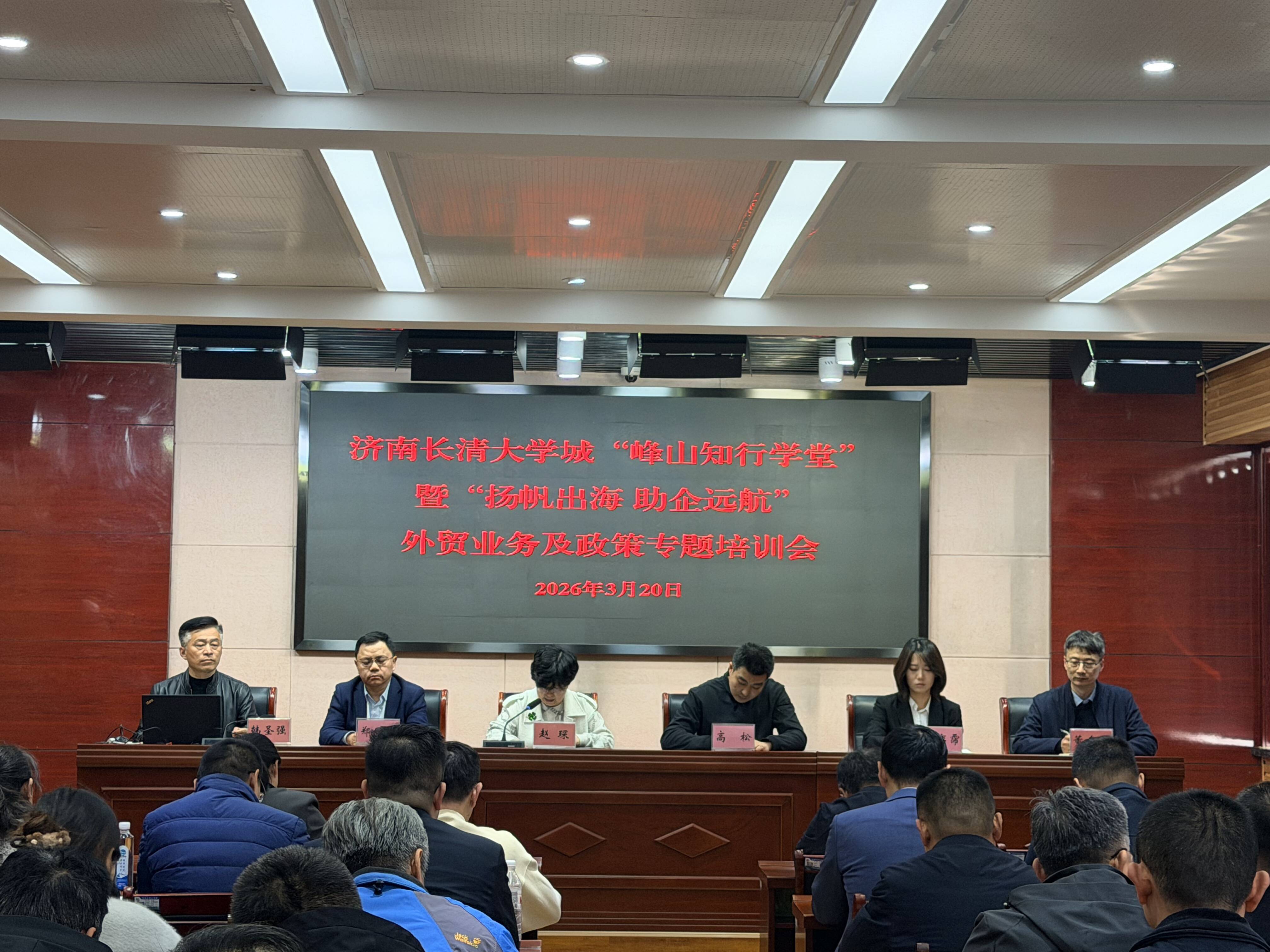 3月20日下午,大学城管委会联合区工信局,利用峰山知行学堂,举办了“扬帆出海 助企远航”外贸业务及政策专题培训会。此次培训会旨在助力辖区企业精准把握外贸发展新趋势,提升国际市场竞争力,推动外贸工作高质量发展。大学城管委会班子成员,区工信和科技局相关负责同志、管委会全体人员、济清控股相关负责同志参加,来自辖区内近40个企业代表踊跃参与。
