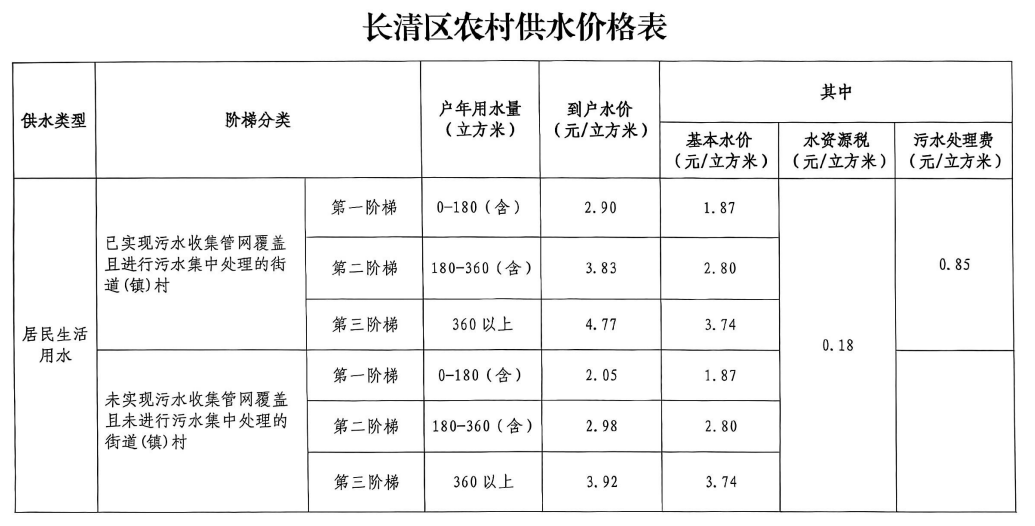 济南市长清区发展和改革局 济南市长清区城乡水务局关于长清区农村供水价格的通知