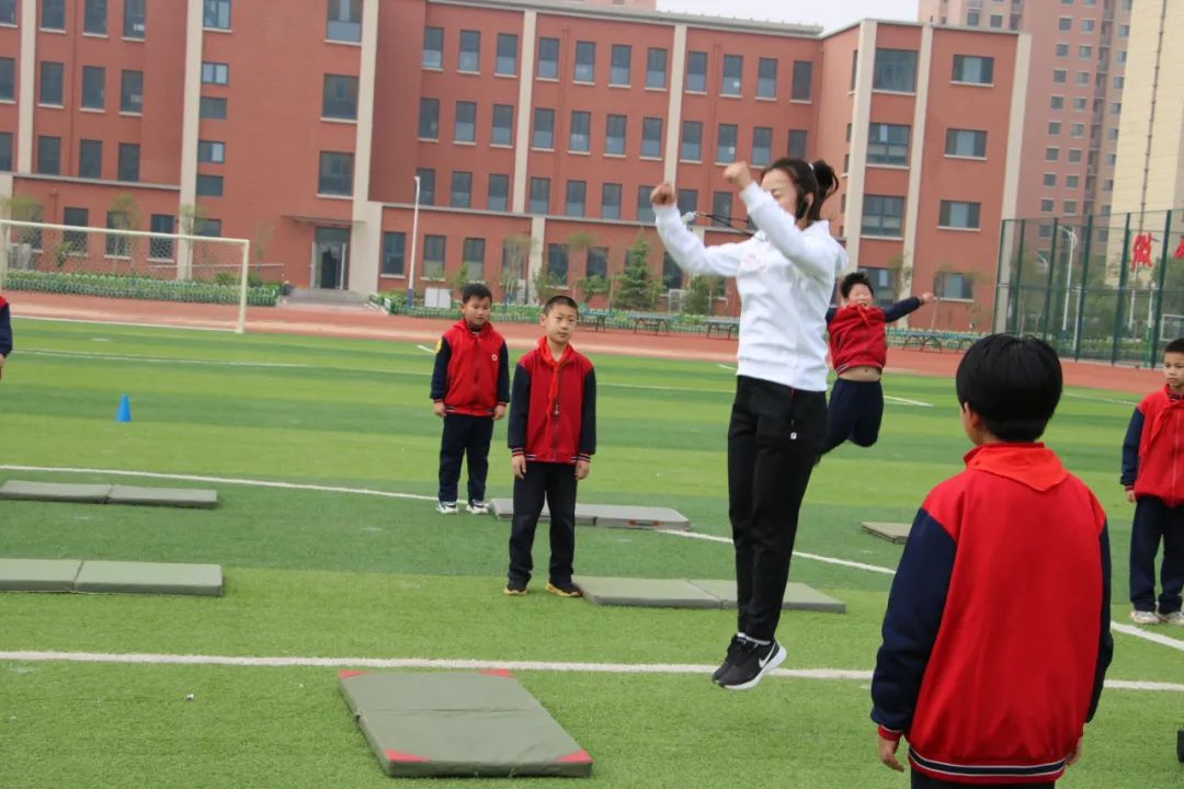 靖书荣老师执教体育课《立定跳远》,靖老师认真讲解立定跳远跳时的动作要领,并做动作示范。同学们听的非常认真,学习氛围浓厚。靖老师将全班学生分小组,学生在老师的带领下进行完整的立定跳远练习。在分组练习时,老师不断的巡回耐心指导学生,帮助学生指出错误且纠正错误。