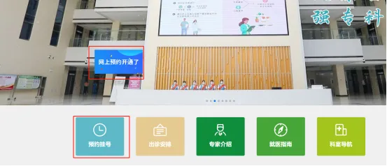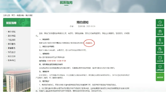第三步:点击网站页面飘窗“网上预约开通了”或“预约挂号”,跳转到“预约须知”页面
